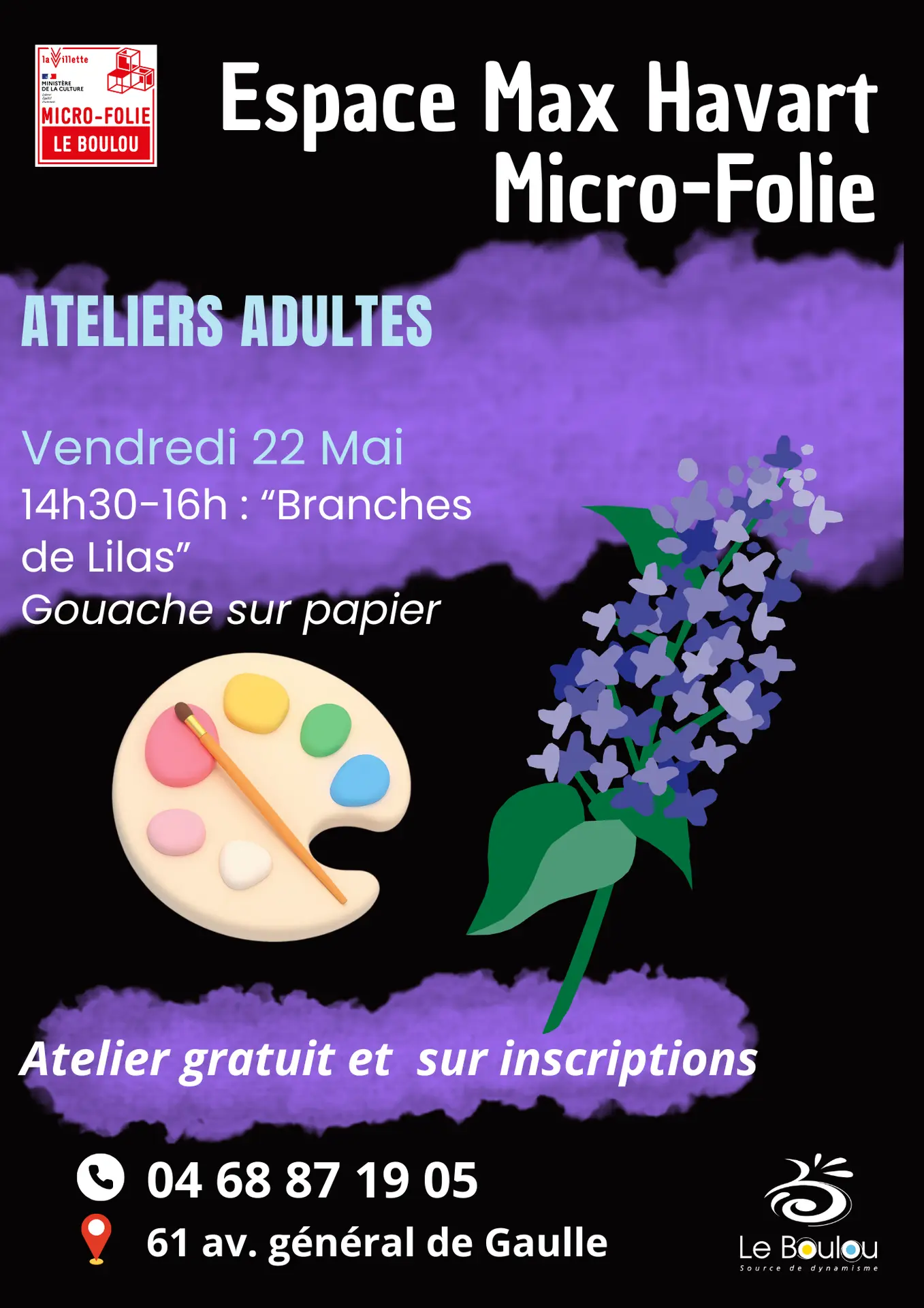 14-30-16h Atelier adultes " Branches de lilas" inspiré d'œuvres d'art du musée numérique à base de gouache